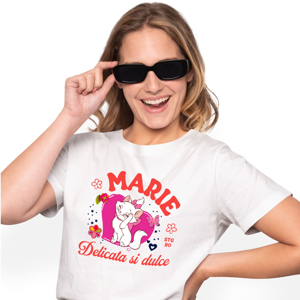 Tricou Femei cu Marie – Pisicuta Cu Stil si Inima Mare 100% Bumbac, Alb, XS