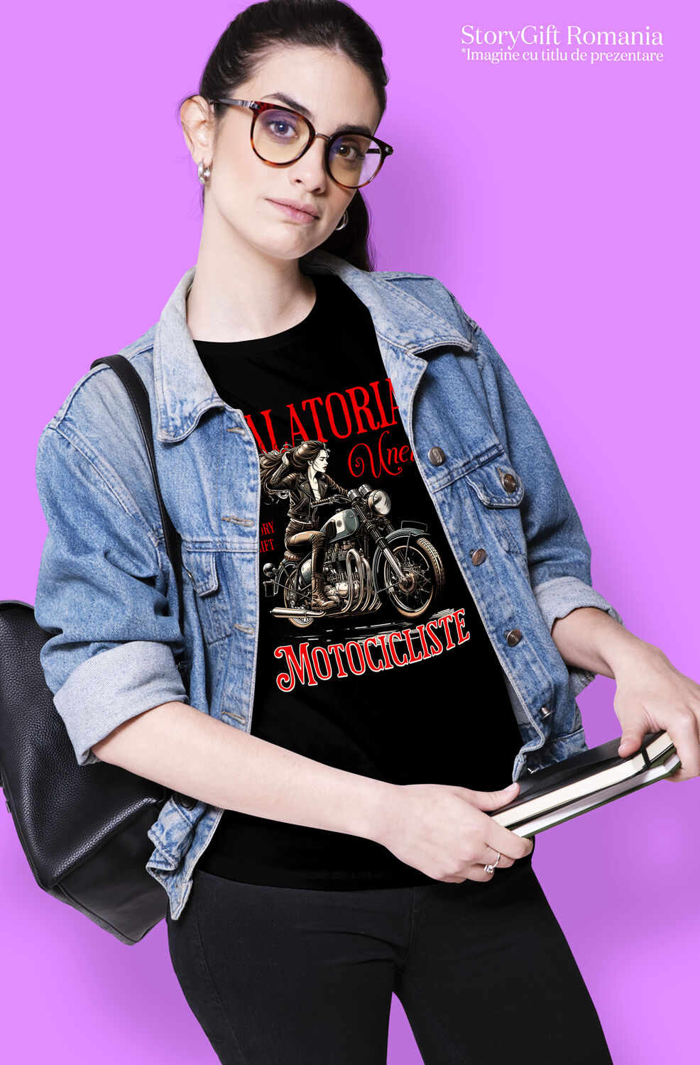 Tricou Femei cu Fata Atragatoare Motor Vintige Clasic Pasiune Calatorie Aventura Hobby cu imprimeu pe Fata, 100% Bumbac, Negru, M
