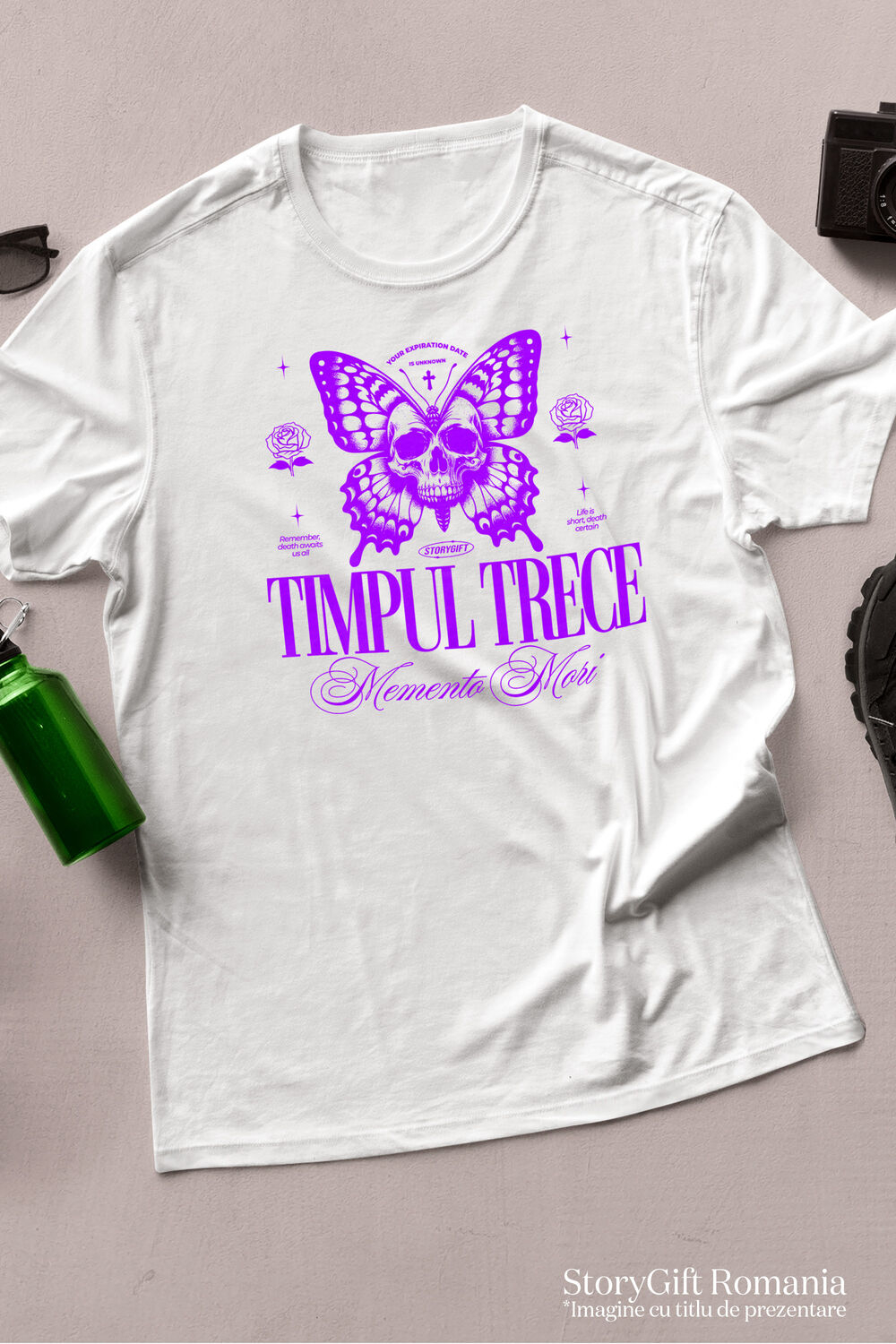 Tricou Femei cu Fluture Cu Craniu Uman Copii Cruce Motivational, Flori Trandafiri cu imprimeu pe Fata, 100% Bumbac, Alb, L