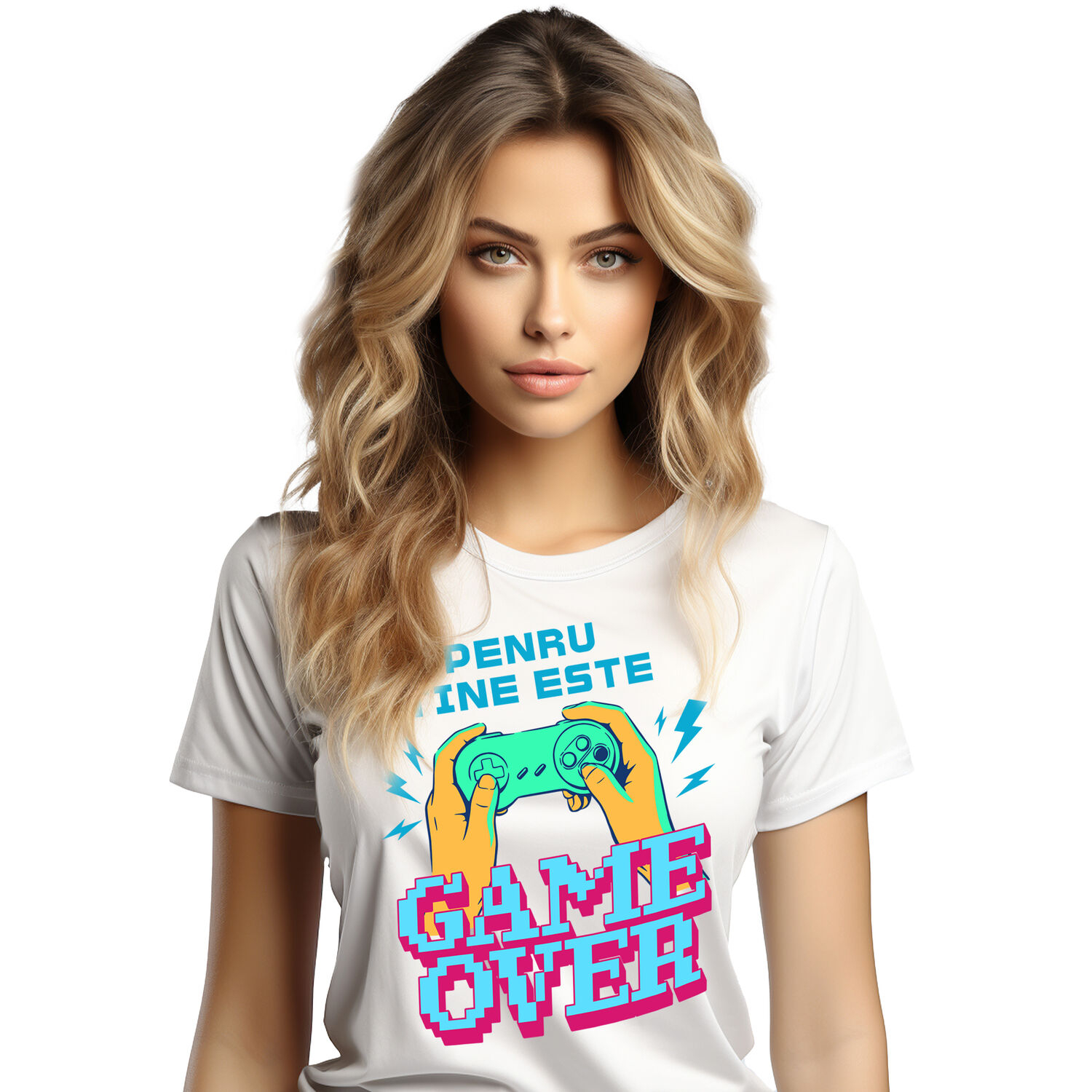 Tricou Femei cu Maneta Jocuri Video In Maini Copil, Lume Digitala, Calculator, gamer cu imprimeu pe Fata, 100% Bumbac, Alb, S