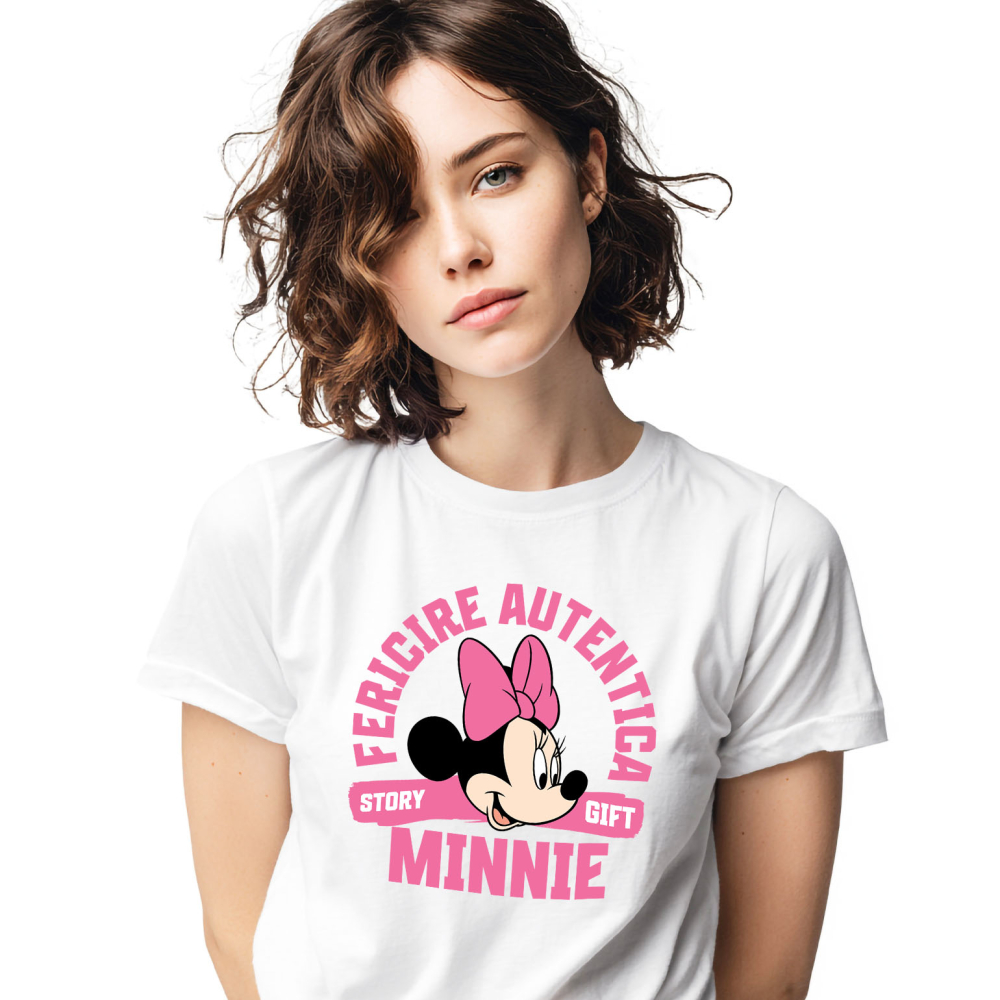 Tricou Femei cu Minnie, cu zâmbetul ce schimbă totul 100% Bumbac, Alb, M