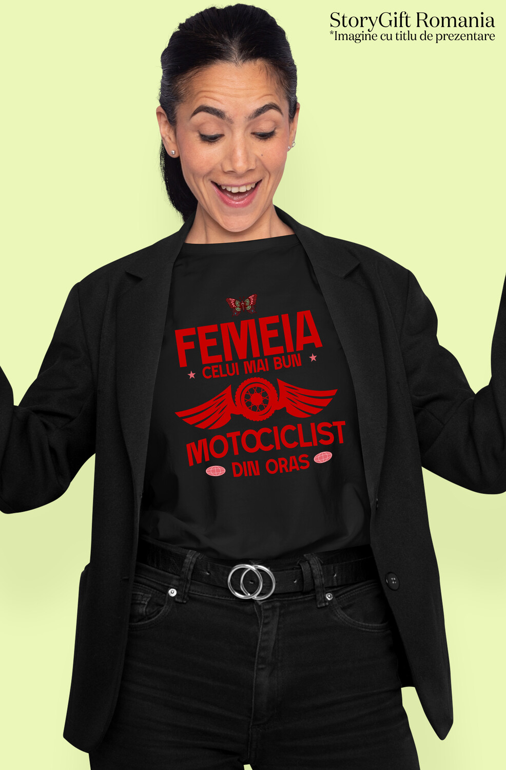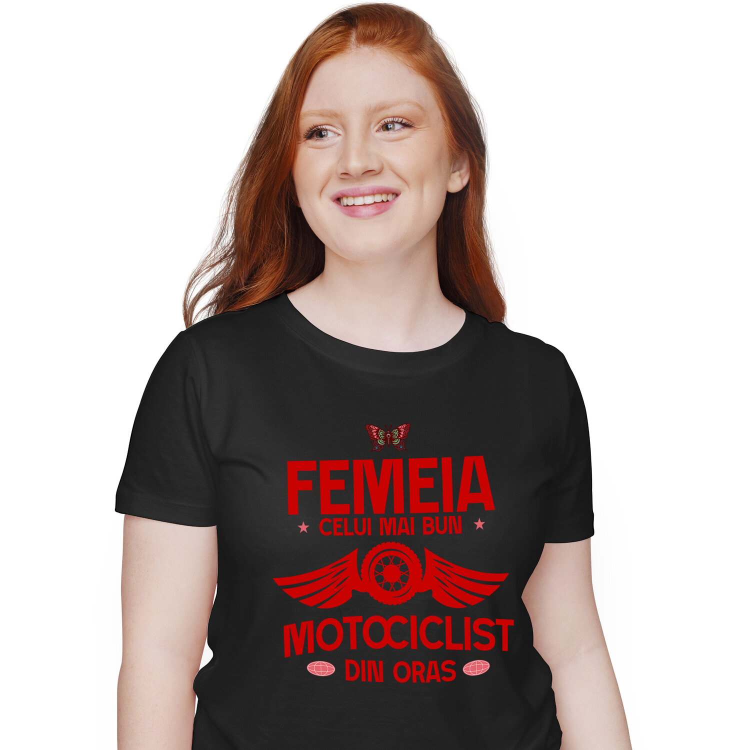 Tricou Femei cu Pasiune Pentru Motocicleta Iubire Dragoste Sotie cu imprimeu pe Fata, 100% Bumbac, Negru, M