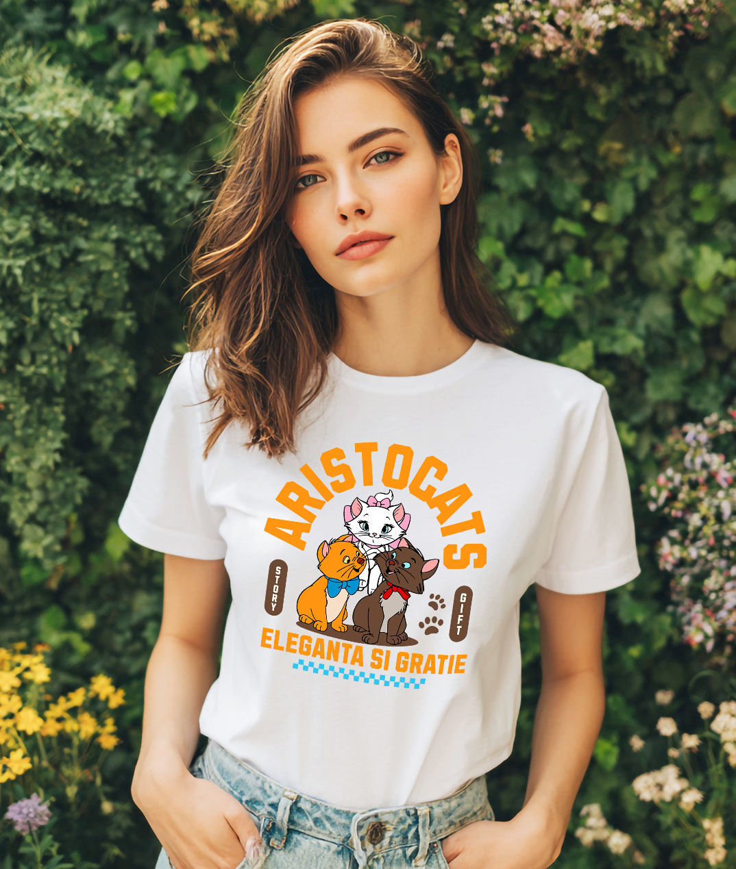 Tricou Femei cu Aventuri Magice cu Pisicile Aristocrate 100% Bumbac, Alb, S