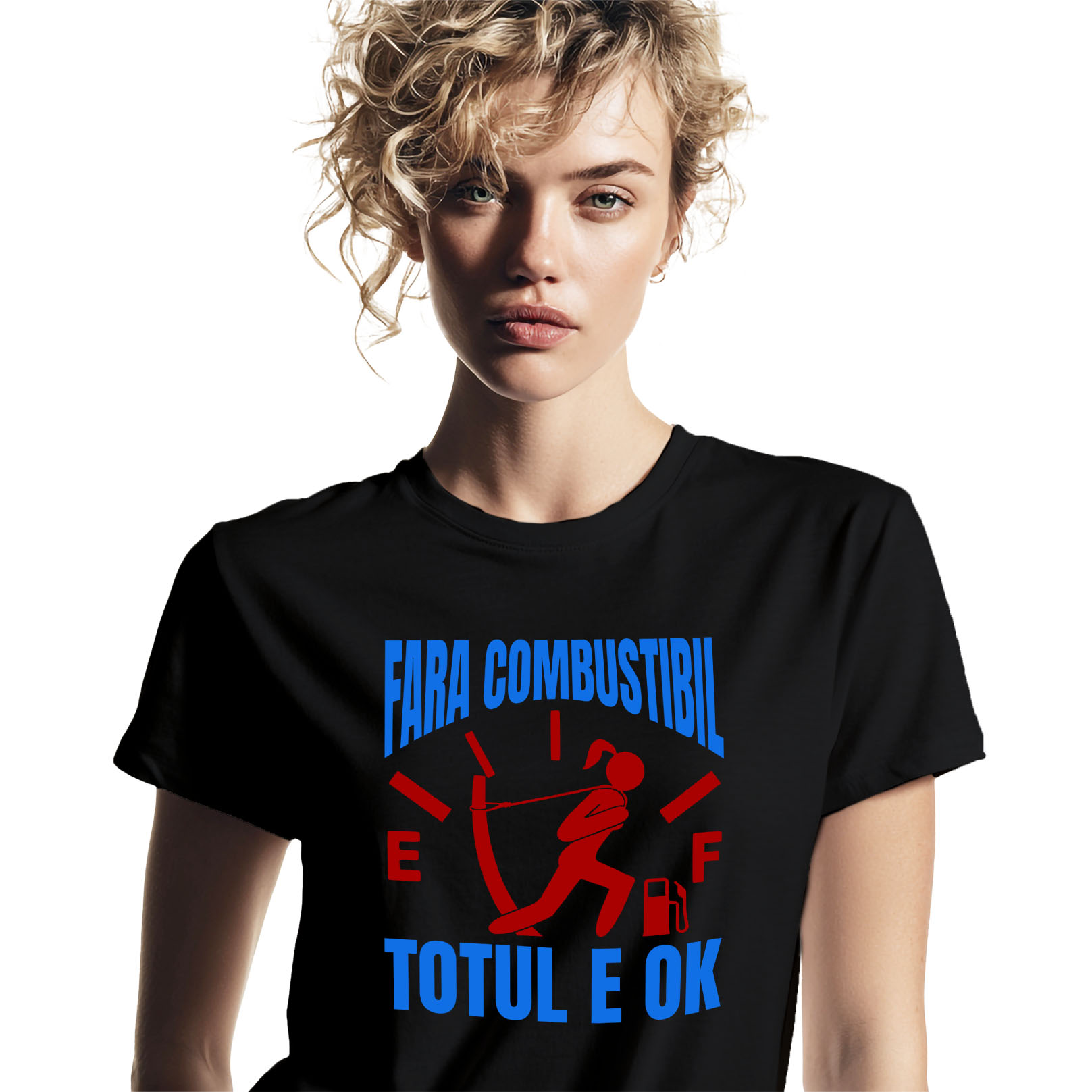 Tricou Femei cu Semn Bord Nivel Combustibil Fata Tragand Sfoara Linia Masina cu imprimeu pe Fata, 100% Bumbac, Negru, L