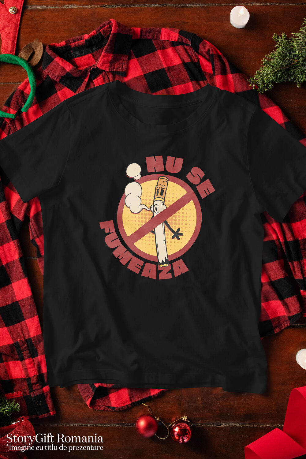 Tricou Femei cu Tigara Fumand Semn Interzis Vicii Sanatate cu imprimeu pe Fata, 100% Bumbac, Negru, S