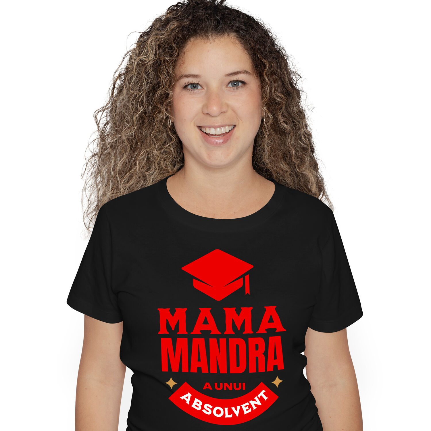 Tricou Femei cu Toca Absolvire Scoala educatie Familie cu imprimeu pe Fata, 100% Bumbac, Negru, XL