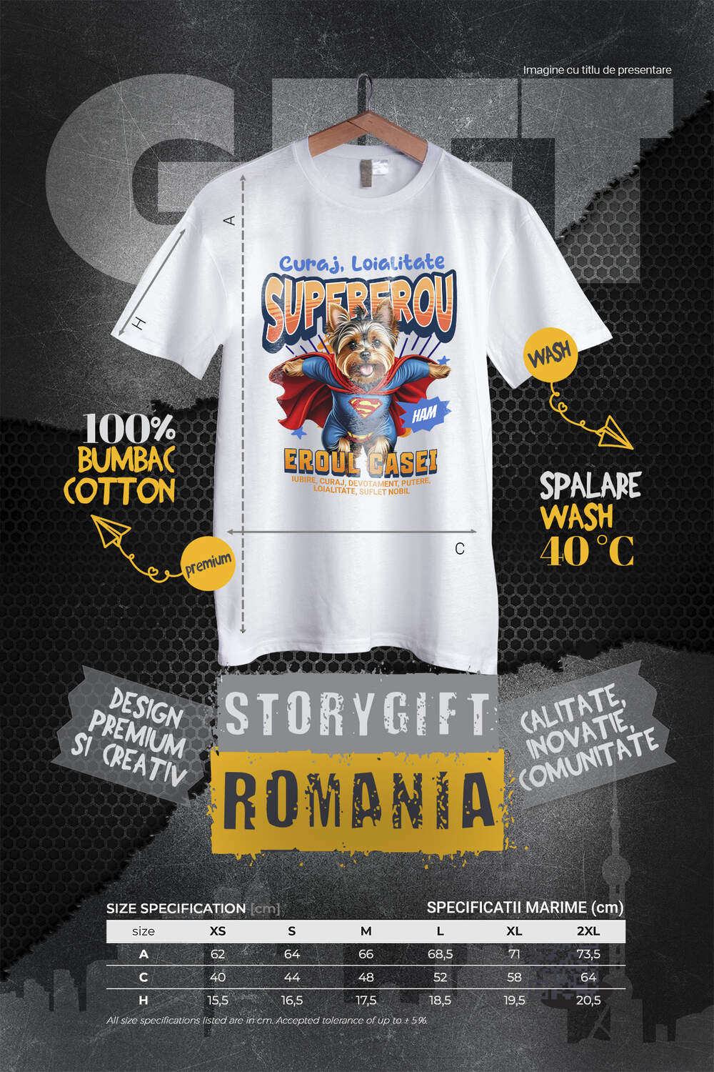 Tricou Femei cu Yorkshire Terrier Caine In Costum de SuperMan cu Pelerina, Erou Nocturn, Desene animate, Copii, Iubitorii de Animale cu imprimeu pe Fata, 100% Bumbac, Alb, XL