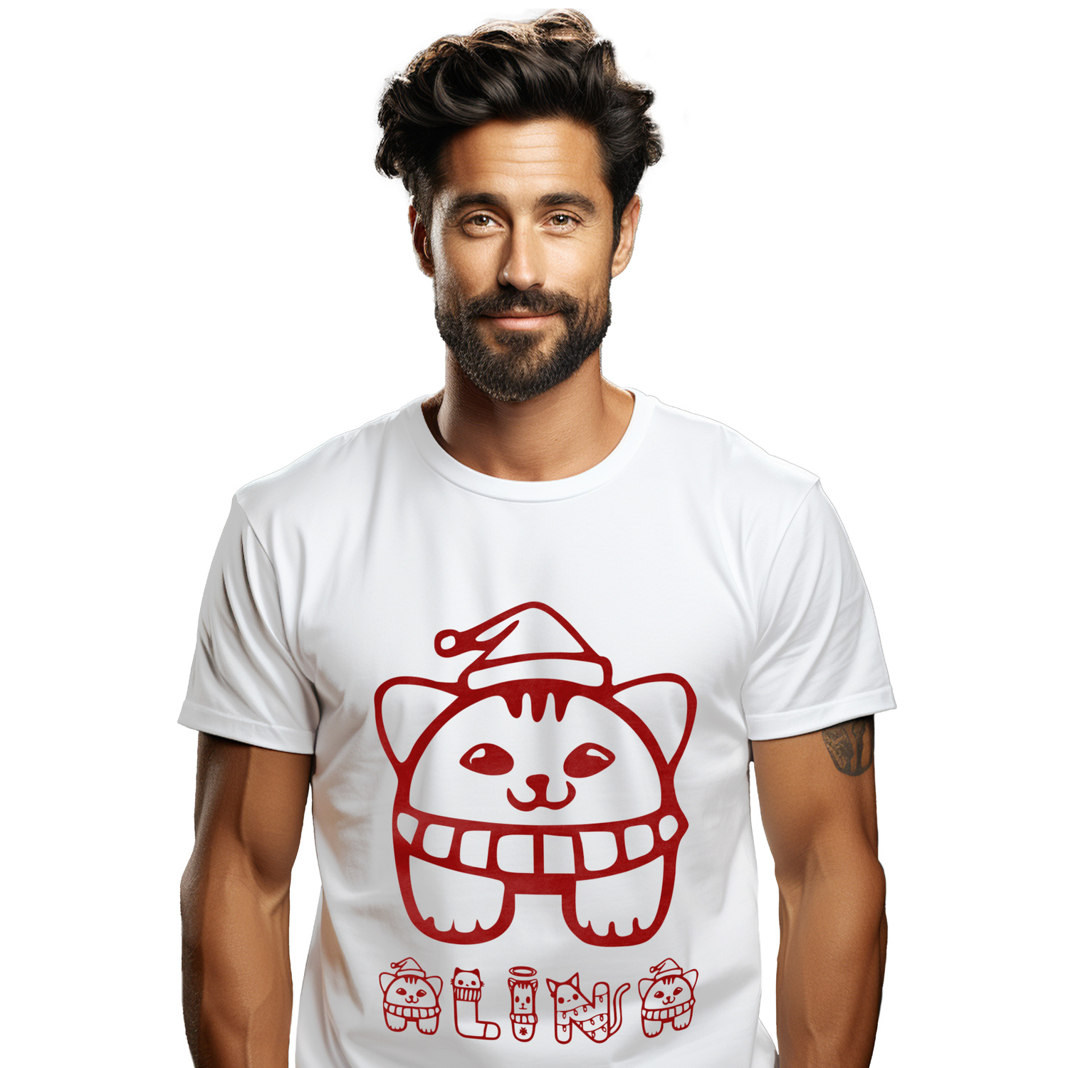 Tricou Personalizat Barbati Pentru Iubitorii De Craciun, Caine Cu Fular Si Caciula, Text Nume Personalizat, Culoare Rosu, Alb, 100% Bumbac, Marime XS