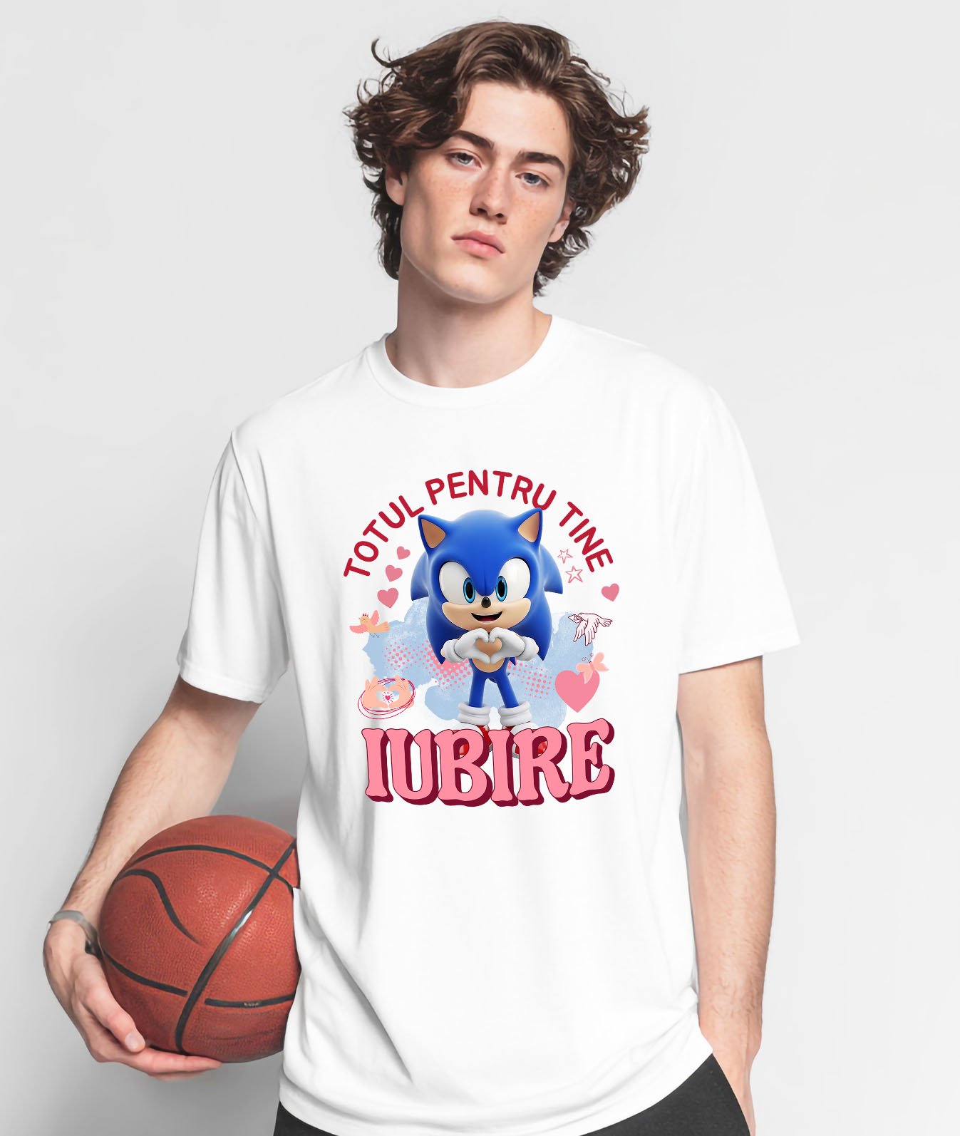 Tricou Barbati cu Sonic, Iubire, Dragoste, Afectiune, Inima 100% Bumbac, Alb, M