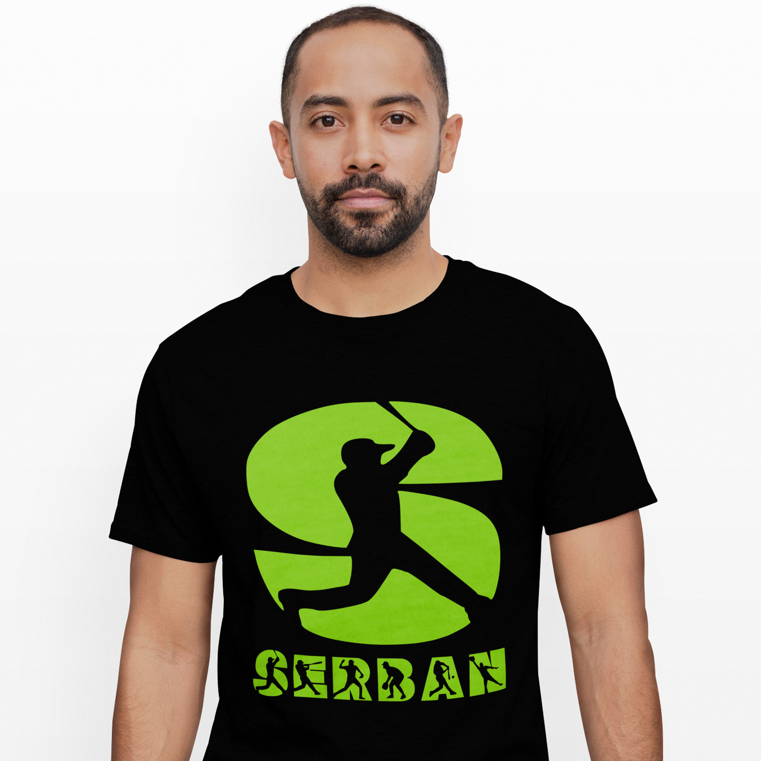 Tricou Personalizat Barbati Pentru Iubitorii De Baseball, Minge, Silueta Sportiv, Text Nume Personalizat, Copii, Culoare Verde, Negru, 100% Bumbac, Marime XS