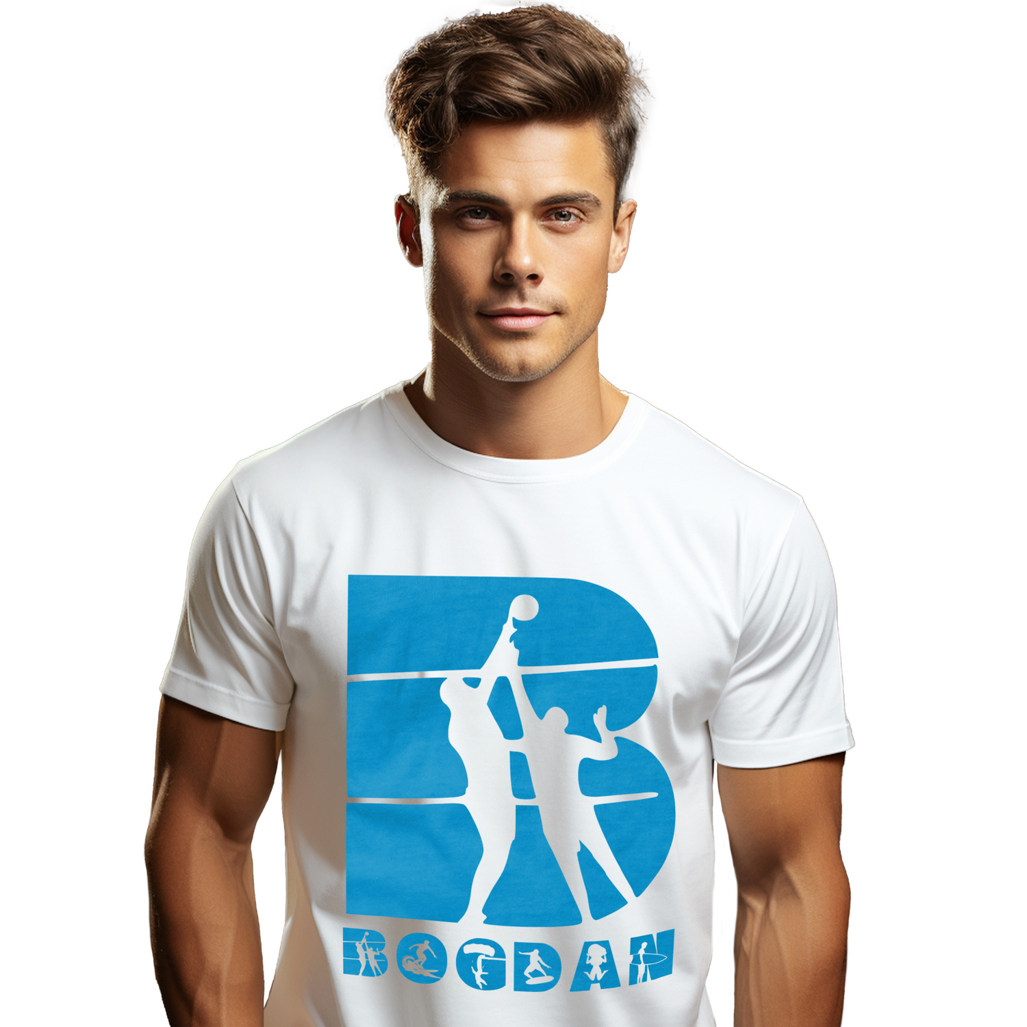Tricou Personalizat Barbati Pentru Iubitorii De Volei Plaja, Placa Surff, Text Nume Personalizat, Culoare Albastru, Alb, 100% Bumbac, Marime XS